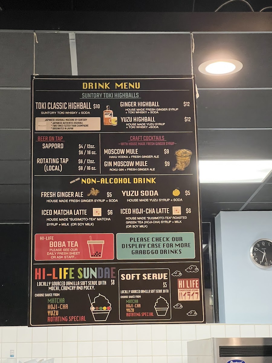 The drink selection complements the food with thoughtfully crafted cocktails like the Moscow Mule alongside unique house treats such as Yuzu Soft Serve or Matcha Latte, inviting guests to relax in the covered patio or airy indoor space. Overall, Hi Life’s offerings suit a range of visits—whether a solo meal, a casual catch-up, or a small group gathering—fostering a welcoming atmosphere that pairs well with quality ingredients and straightforward flavors.